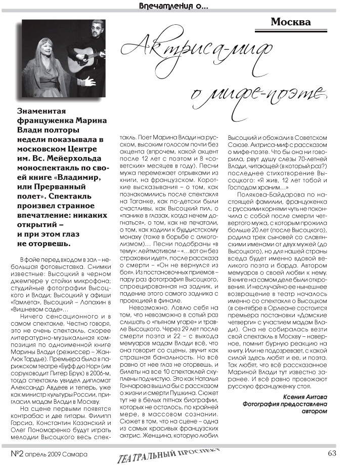Ксения Аитова "Актриса-миф о мифе-поэте (Марина Влади)