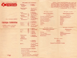 В 1981 году на сцене Куйбышевского академического театра драмы им. М. Горького состоялась премьера спектакля по роману «Господа Головлёвы» (режиссер-постановщик – В. Муравец, художник – Ф. Розов, музыкальное оформление М. Левянта). Что писали о спектакле в прессе, можно ознакомиться